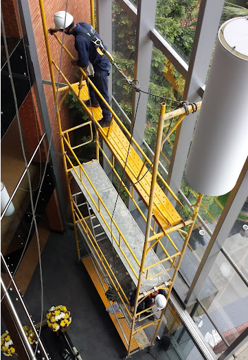 Diseñado para proyectos de mampostería, pañete, pintura e instalación de fachadas, garantiza un desempeño confiable incluso en espacios muy altos y anchos.